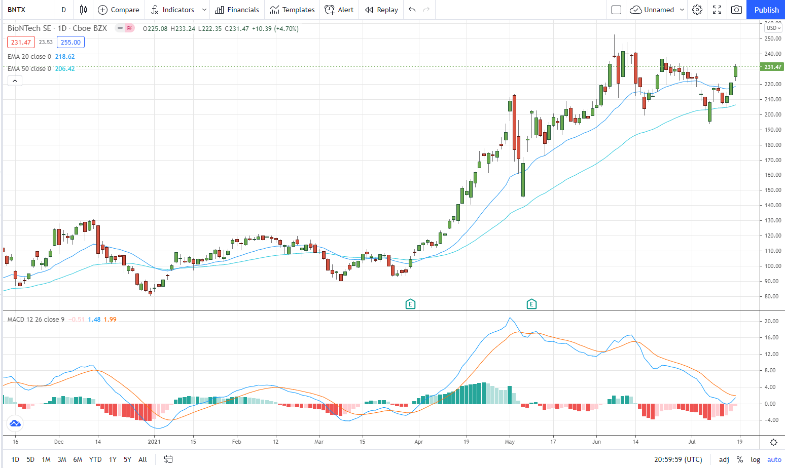 Web Based on the share price being above its 5 20 50 day exponential moving averages the current trend is considered strongly bullish and BNTX is experiencing buying. Web Stock Price Forecast. BioNTech SEs next ex-dividend date.